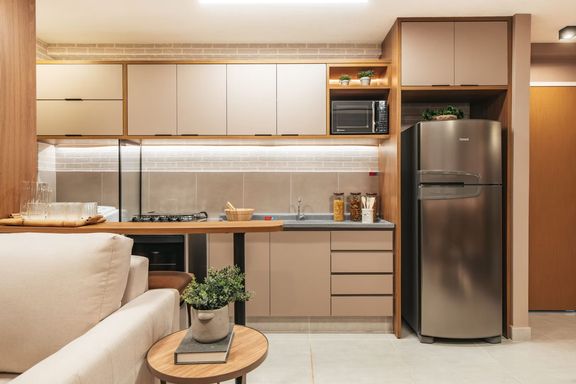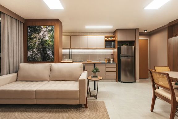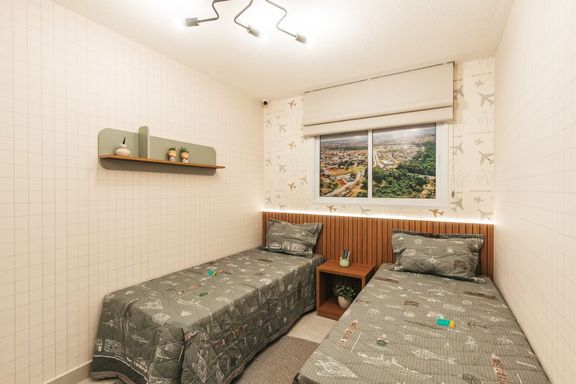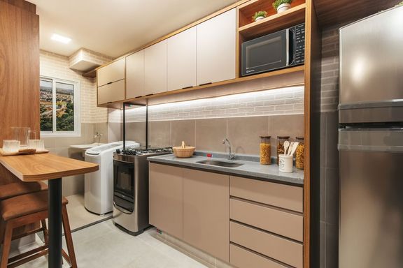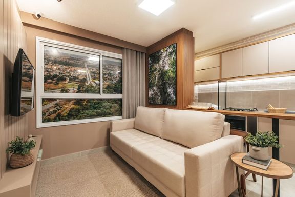 Com sala para dois ambientes, cozinha americana, área de serviço e 1 vaga de garagem.