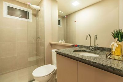 Área de lazer completa mobiliada e decorada, incluindo piscina (adulto e infantil), salão de festas, 2 espaços gourmet, churrasqueira, playground, brinquedoteca, quadra de esportes, academia, praça de convivência, espaço mulher, pet place e bicicletário.